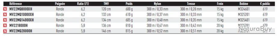 Caractéristiques du moulinet Daiwa Maverick 22MQ 20 000 H