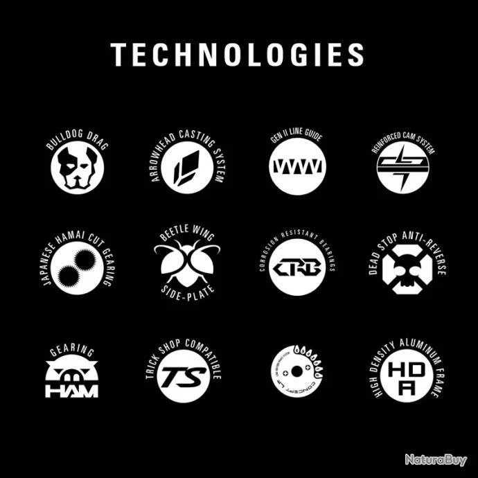 - 7 roulements à billes (2 High Spin Corrosion Resistant, 4 roulements inox + 1 Anti-Retour Dead Stop)