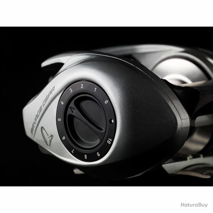 NouveautĂ© 2022 : Moulinet casting SG10 300 BC LH, manivelle Ă gauche, de la marque Savage Gear, d’un poids de 238g.