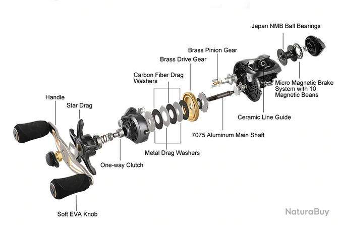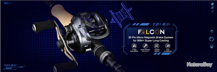 Rapport d’engrenage: 8.1:1 Poids: 190g Roulements: 11BB Frein Max: 7KG Capacité de ligne: 0.33mm-100M