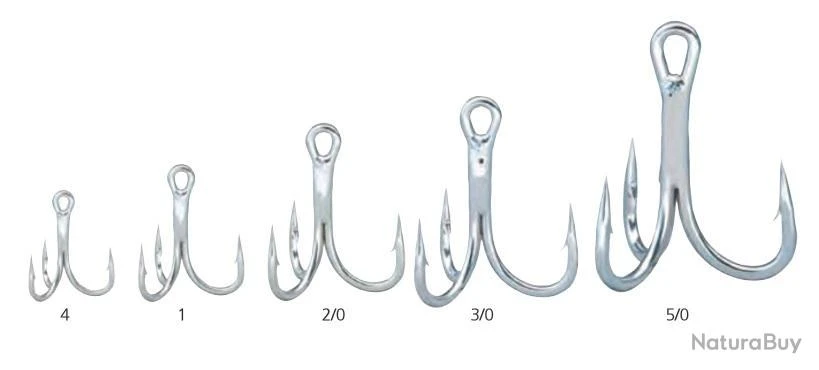 Hameçons triples étamés. Très fort de fer (4X strong). Pointe super needle point. Hampe courte et large ouverture parfaite pour armer les plus gros poppers, stick baits exotiques, etc.. Une référence pour l’exotique et les plus grands poissons de sport. Utilisé aussi pour le silure.
