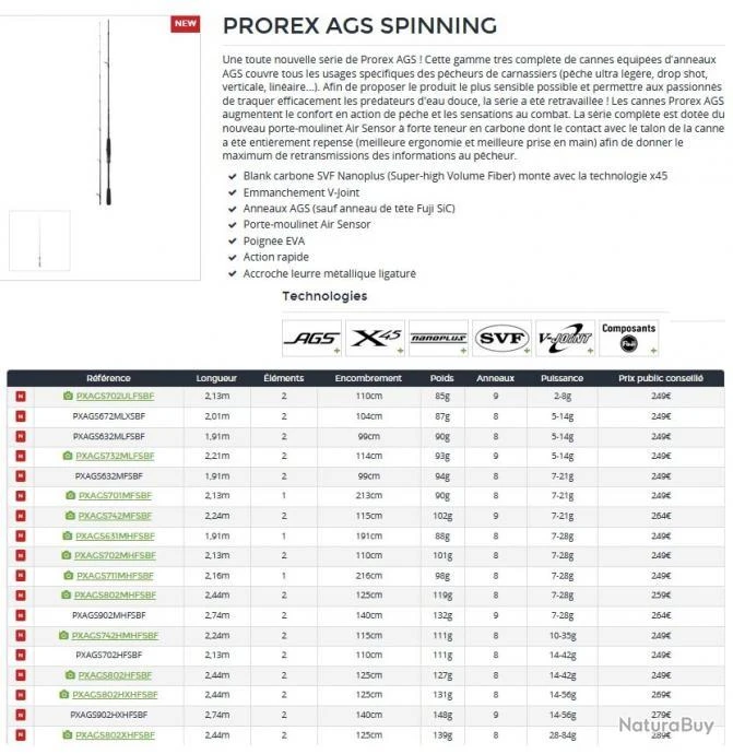Caractéristiques Canne ProrexAGS 2.24 M 7-21 G 742 MFS: