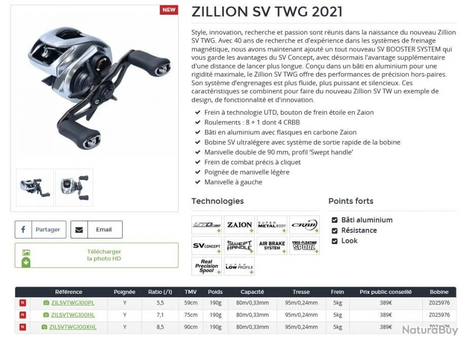 Caractéristiques du moulinet Daiwa baitcasting Zillion SV TWG 100 XHL 2021